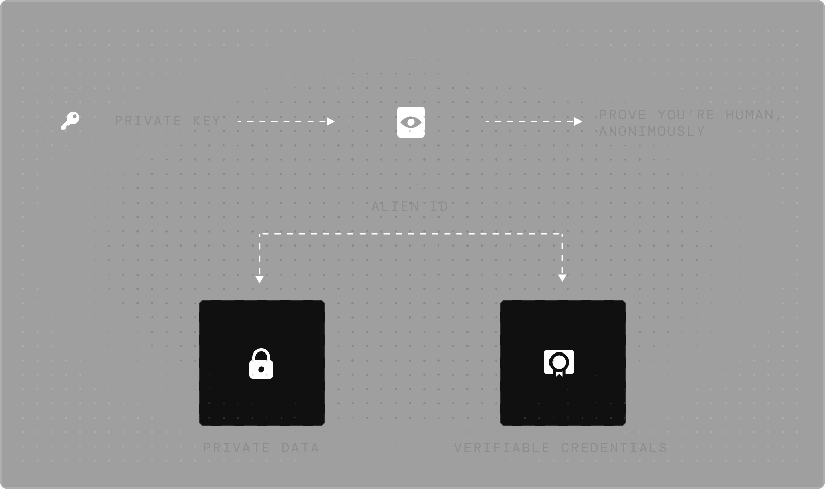 Alien addresses this through technical design. The CHVP requests only necessary information that it doesn’t store, creating cryptographic confirmations like hashes and merkle roots rather than raw personal data. The network’s infrastructure — designed specifically for Alien, which we’ve named Frame — ensures that computations occur within TEEs, and data remains shielded from access or modification, even by hardware owners. This creates verifiable and mathematically guaranteed privacy that enables what we call self-sovereign personal profiles: users can interact online while maintaining cryptographic control over their data, identity and privacy. Consequently, the Alien ID reveals nothing about users except that they are verified unique humans.