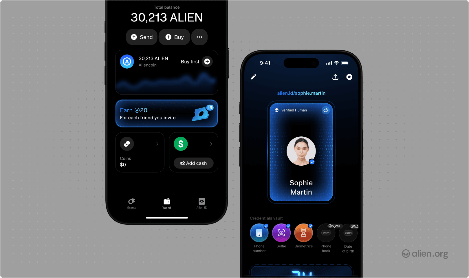 Alien is focused on building digital trust in the age of AI. We are creating fair and credibly neutral identity infrastructure through the Alien Network, a decentralized system that enables people to verify their unique humanity and identity without sacrificing privacy or agency. As digital systems become increasingly centralized, we’re committed to ensuring that humans remain sovereign and free on the internet. The Alien Network has been built with three key components — Alien ID, Continuous Human Verification Protocol and Aliencoin — all accessible via the Alien App.