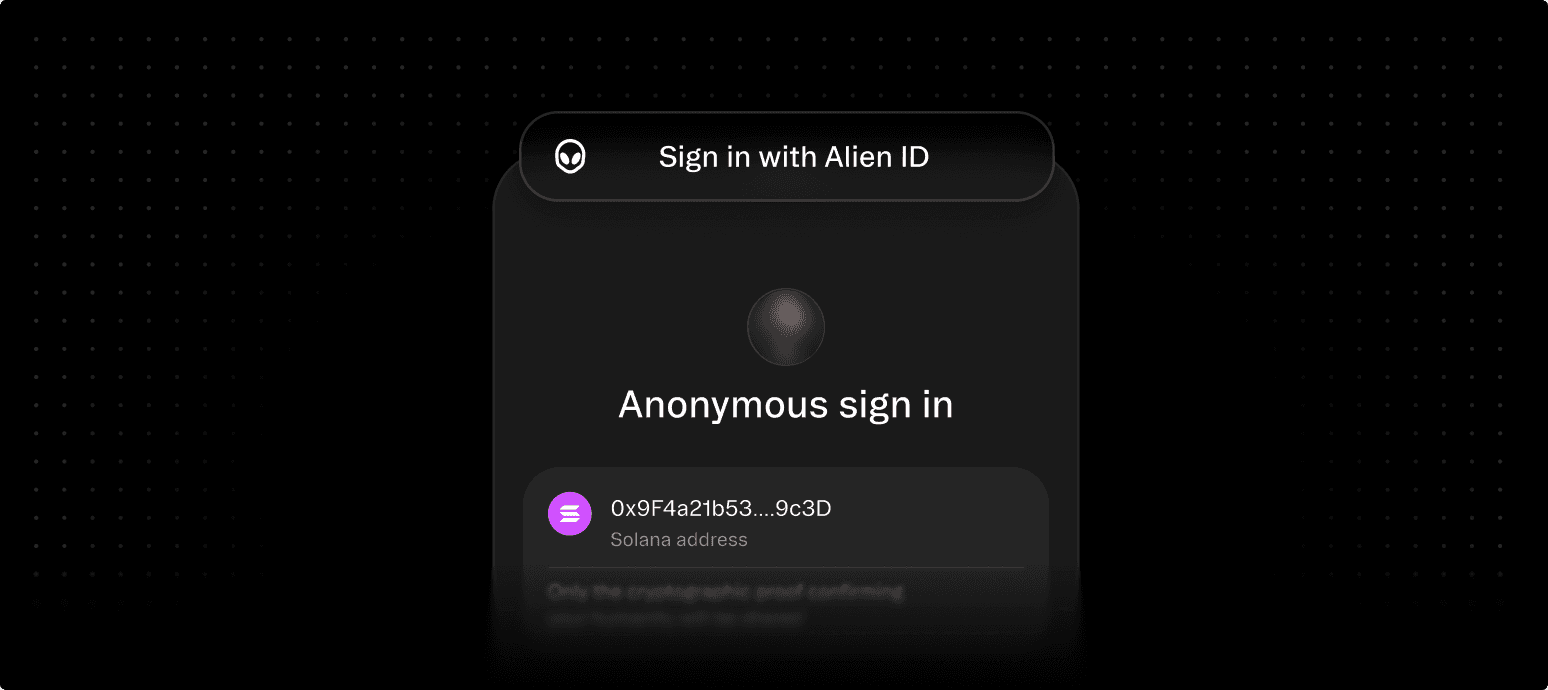 Share only a cryptographic proof of humanity. No name, no email — just your Solana address