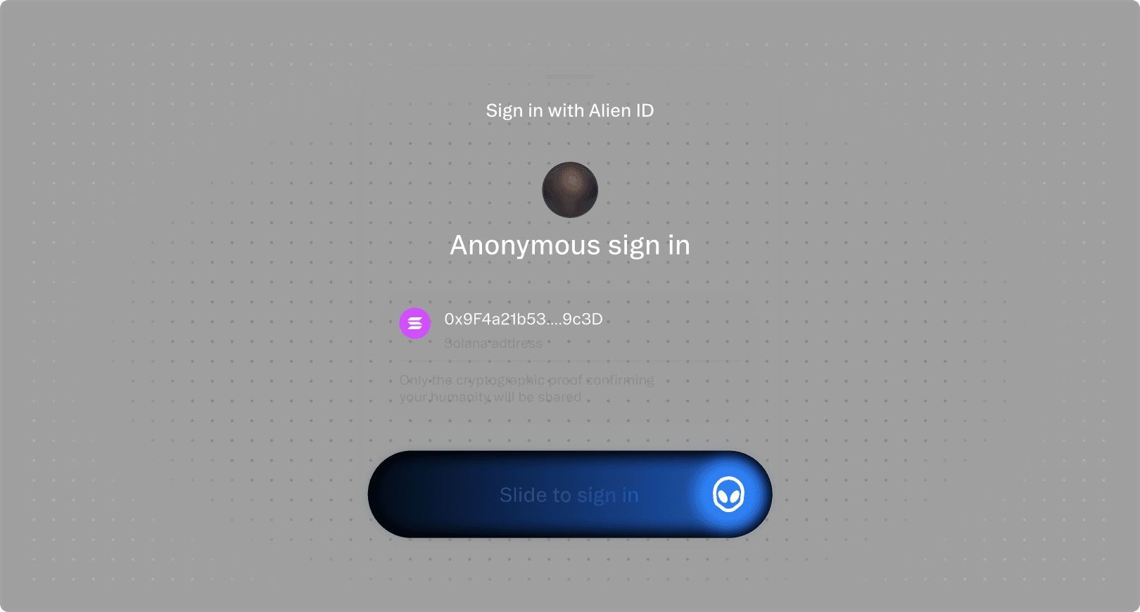 Enable trust in your apps with Alien ID and Alien Network. From Web2 apps to Solana dApps and mini apps.
